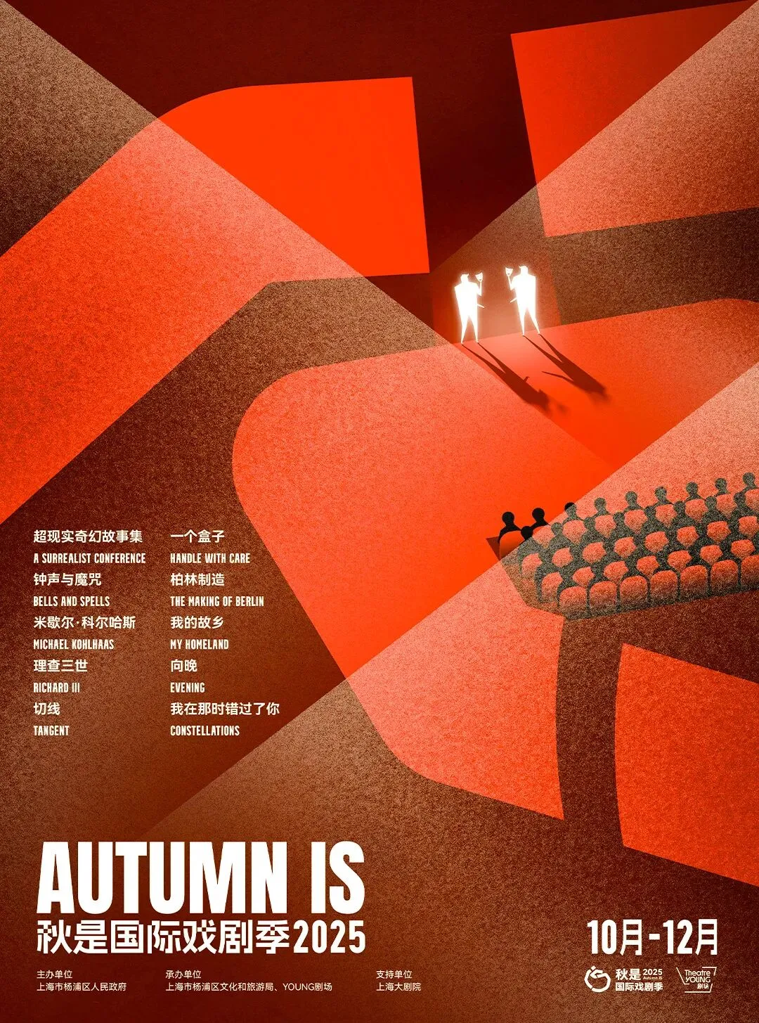 2025秋是戏剧季将有来自比利时、德国、法国、日本、白俄罗斯以及中国的10台54场演出,本次戏剧季的10台剧目主题多元,形式更加丰富,将结合魔术、音乐、纪录片、视觉艺术、偶、沉浸式体验等手段和方式,为观众开启整整两个月的戏剧“新”体验,展现“秋是”戏剧季的“不一YOUNG”。